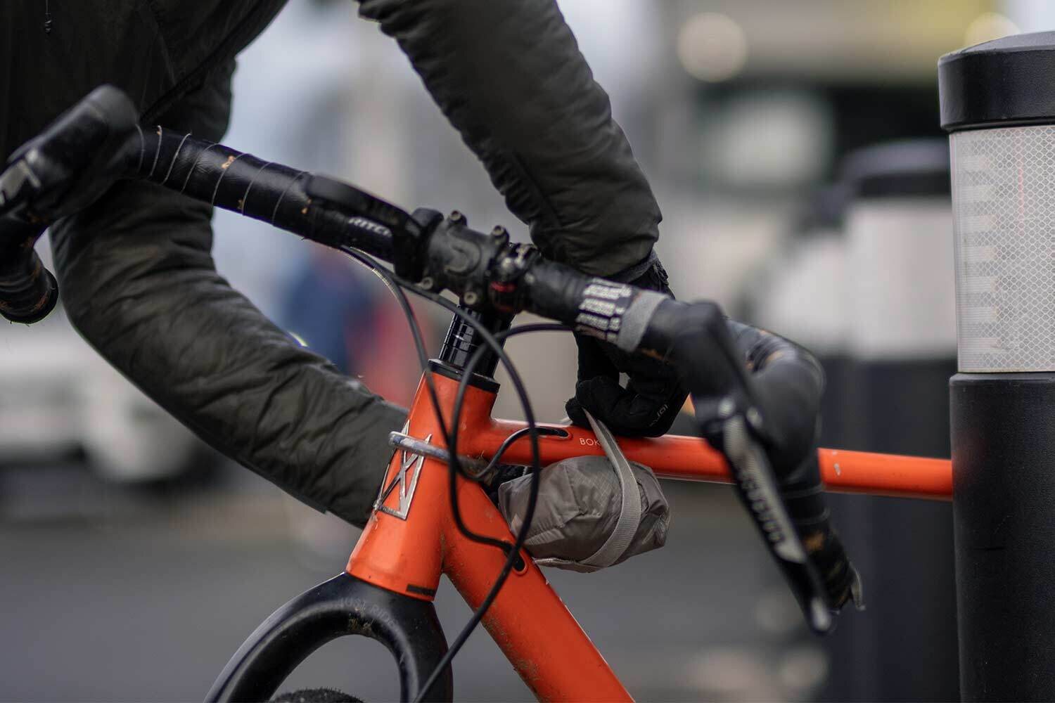 Valmistettu ripstop cordurasta, pakkauttuu itseensä ja kiinnittyy pyörään velcroremmillä. Pitää melko hyvin sadetta ja painaa köykäiset 110grammaa.