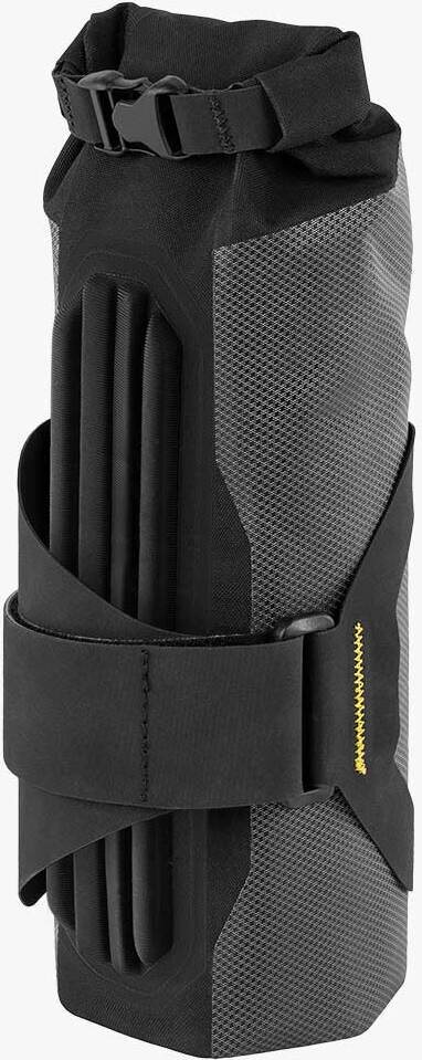 Viistoputkipussukaan sopivaa sisältöä on esimerkiki varaosat, työkalut ja miksei ylimääräinen vesipullokin silloin, kun pitää rontata se ylimääräinen puoli litraa leiripaikkaan. Pussi on vedenpitävä, joten vaikka se onkin rungon eniten roiskeita ryönää saavalla paikalla, sinne säilötty omaisuus on jota kuinkin turvassa. Mitään iskuille kovin arkaa ei tänne vältsii kannata kuitenkaan säilöä.
