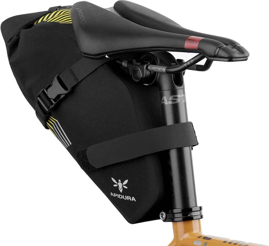 Racing-sarjan kevyt peräporkkana. Pienempiin pakkaustarpeisiin ja kevyemmille kamppeille suunniteltu vedenpitävä satulalaukku.