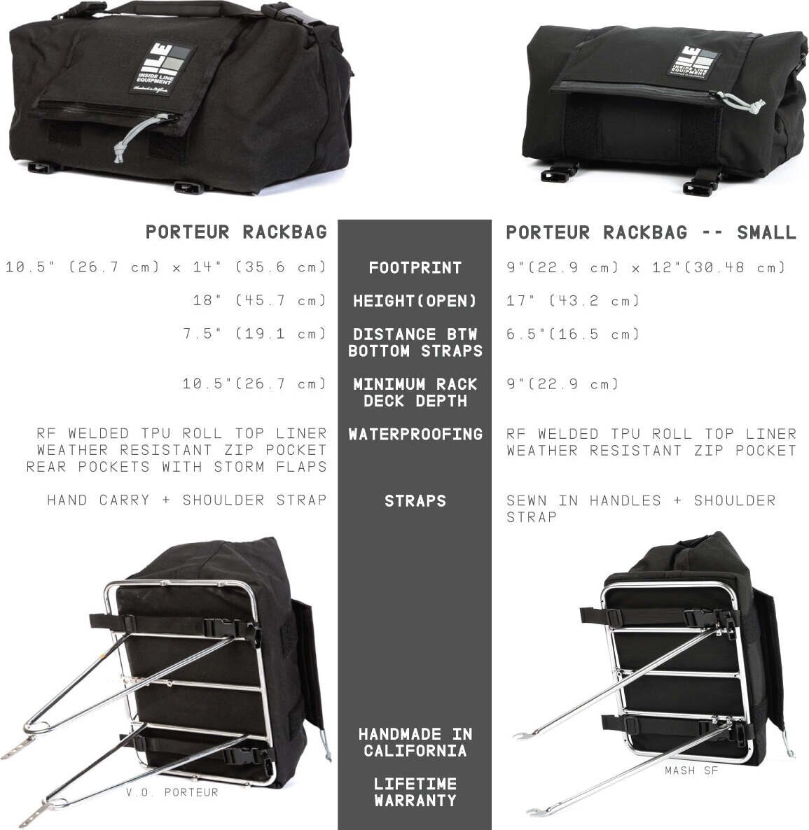 Etutarakka ja olkalaukku. Arkikäyttöön pelkkää parhautta. Kiinnittyy tukevilla soljilla platform-tyyppiseen etutarakkaan. Regular-koko istuii parhaitaiten isohkolle tarakalle, esimerkiksi Pelago Commuterin Largeen.