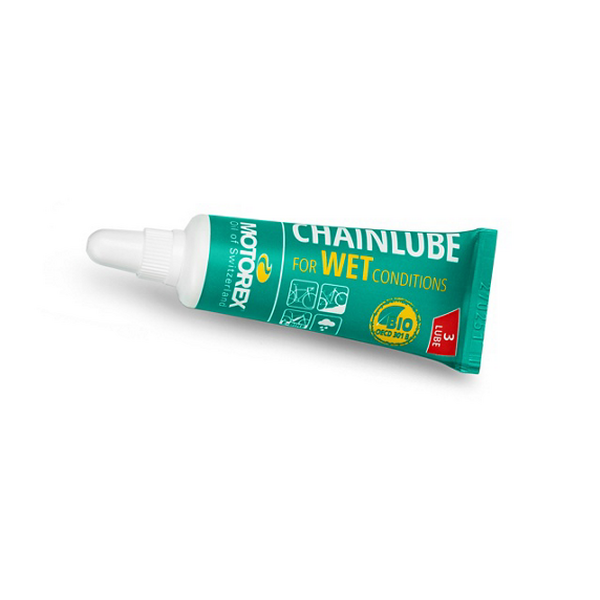 Motorexin "perus"-ketjuvoiteluaineen märän kelin versio. Kuten Motorexin dry, myös wet on biohajoava, täysin synteettinen ja raskasmetalliton. Huoltomme rospuuttosäällä käyttämä ketjuöljy.