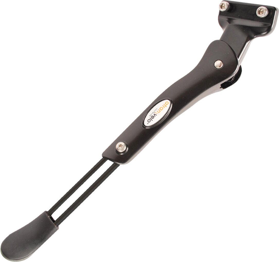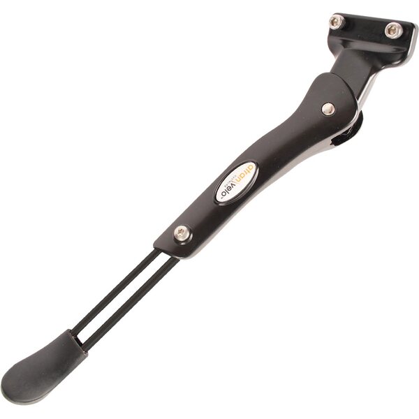 Laadukas ja tukeva seisontajalka pyöriin, jonka takahaarukan vasemmalla puolella kiinnikepaikka kahdelle pultille 40mm leveydellä.