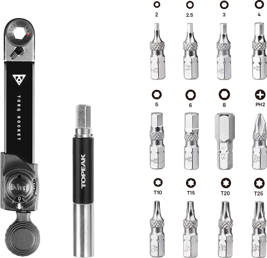 Topeakin oikein soma pieni momenttiavain. Skaala 2-10Nm, joka riittää kaikkiin "pienempiin" fillarihommiin. Tarkoitettu mukana kannettavaksi ja tienpäällä käytettäväksi, mutta uskaltaisin väittää, että tämä palvelee kotimekaanikkoa ainoana momenttivaimenakin (siis niihin pienempiin momenttitarpeisiin)