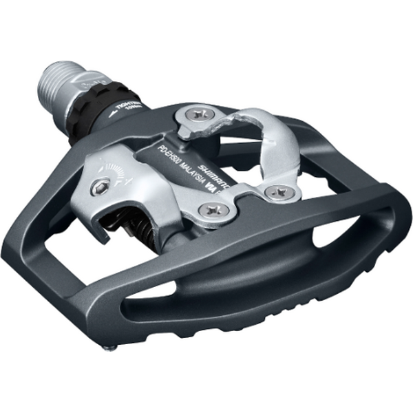 Polkimen toisella puolella SPD-kiinnitys ja toisella tasainen pinta.